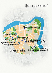 Центральный район Петербурга расположен на левом берегу реки Невы. Граничит с Василеостровским, Петроградским, Выборгским, Калининским, Красногвардейским, Невским и Фрунзенским районами. Площадь - 1,7 тыс. га. Население - 300 тыс. человек.